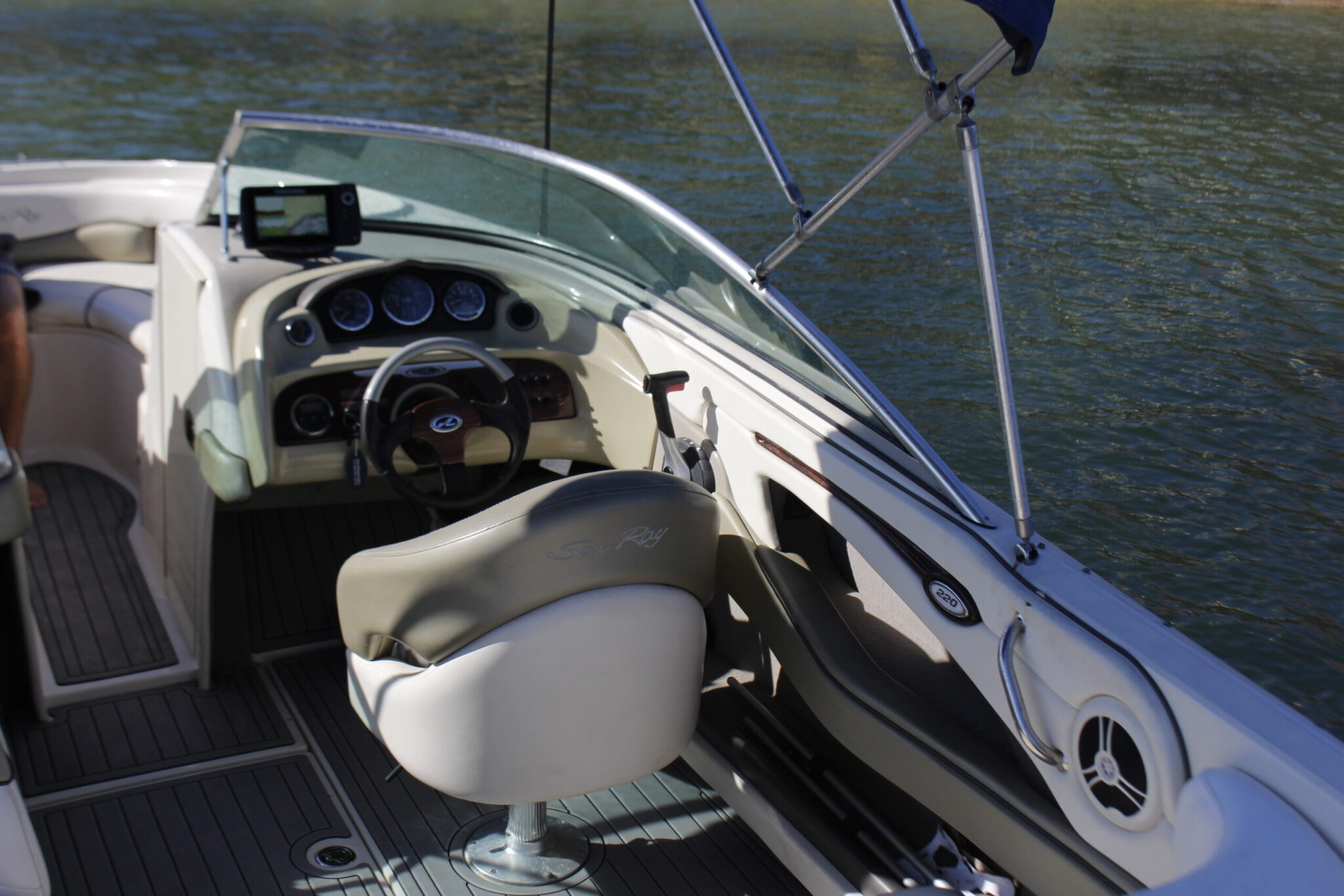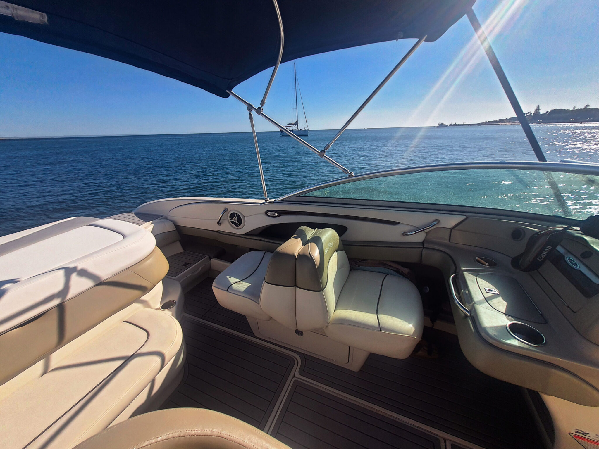 Experience the ultimate pleasure with our Sea Ray 220 Select motorboat, boasting a garanteed construction and design with high-quality materials. Our vessel has been meticulously designed to provide both comfort and understated luxury. Its exceptional performance across different speeds and shallow draft enables easy beach access, while the fully-equipped space ensures an unparalleled experience.